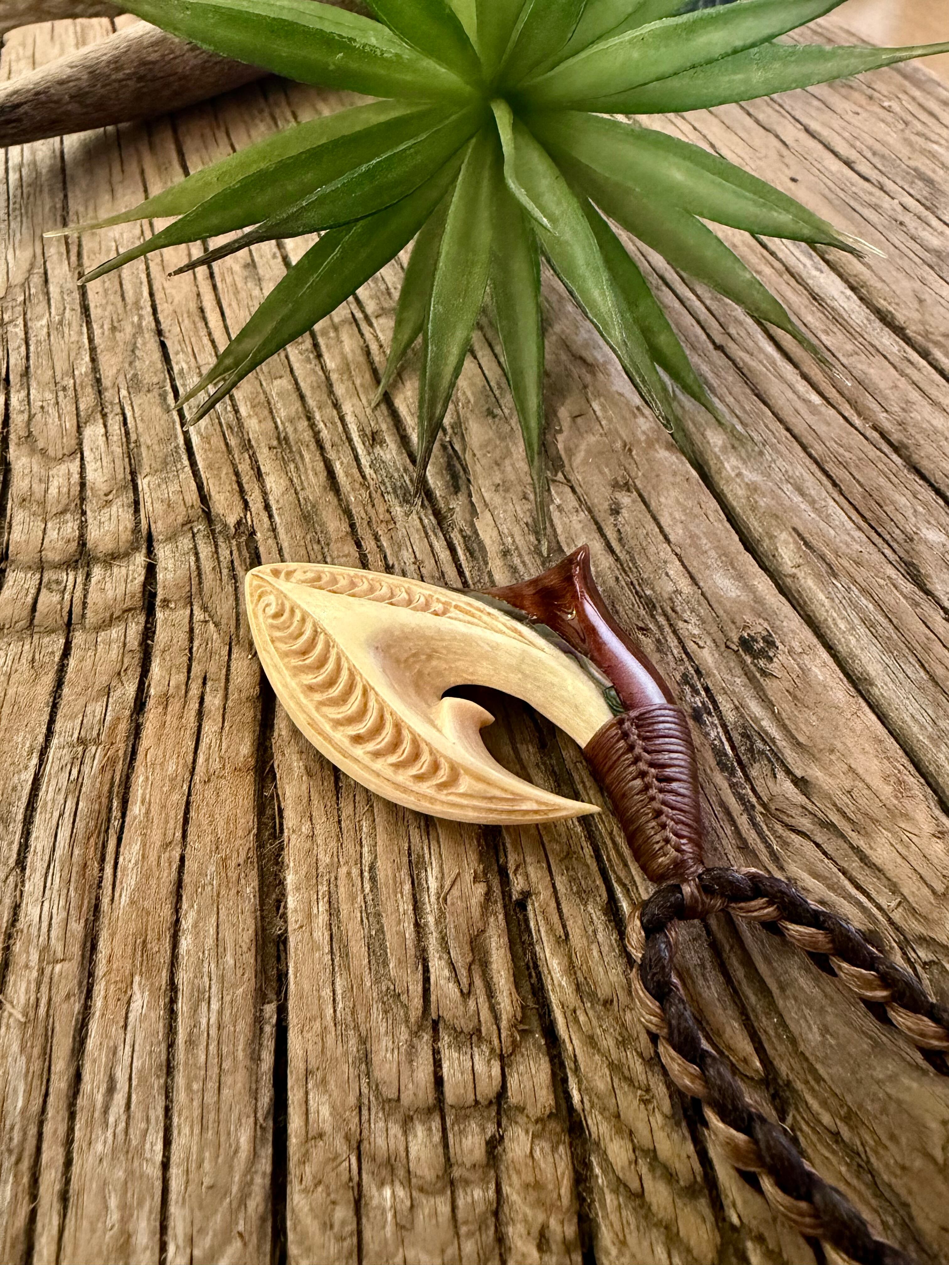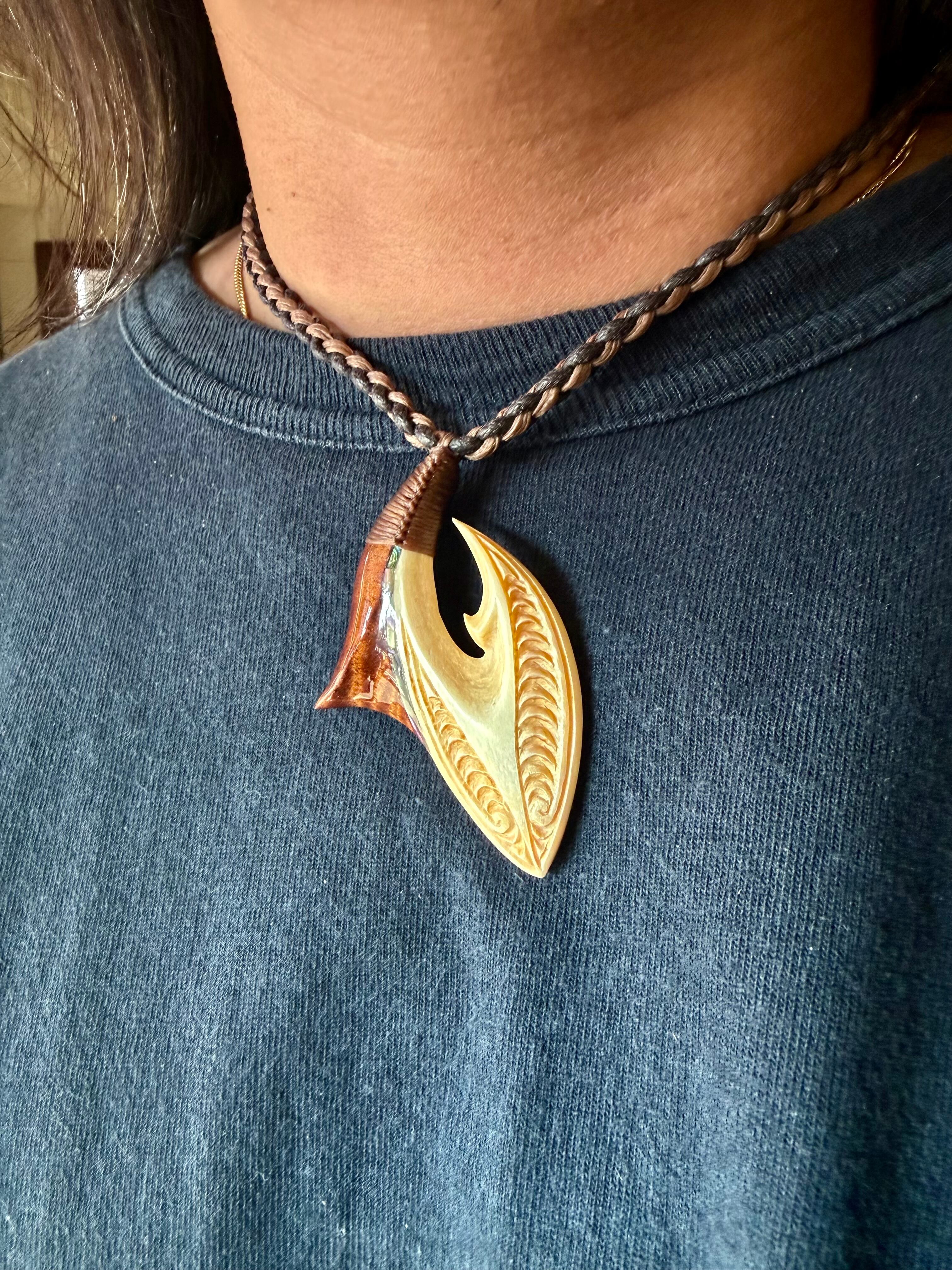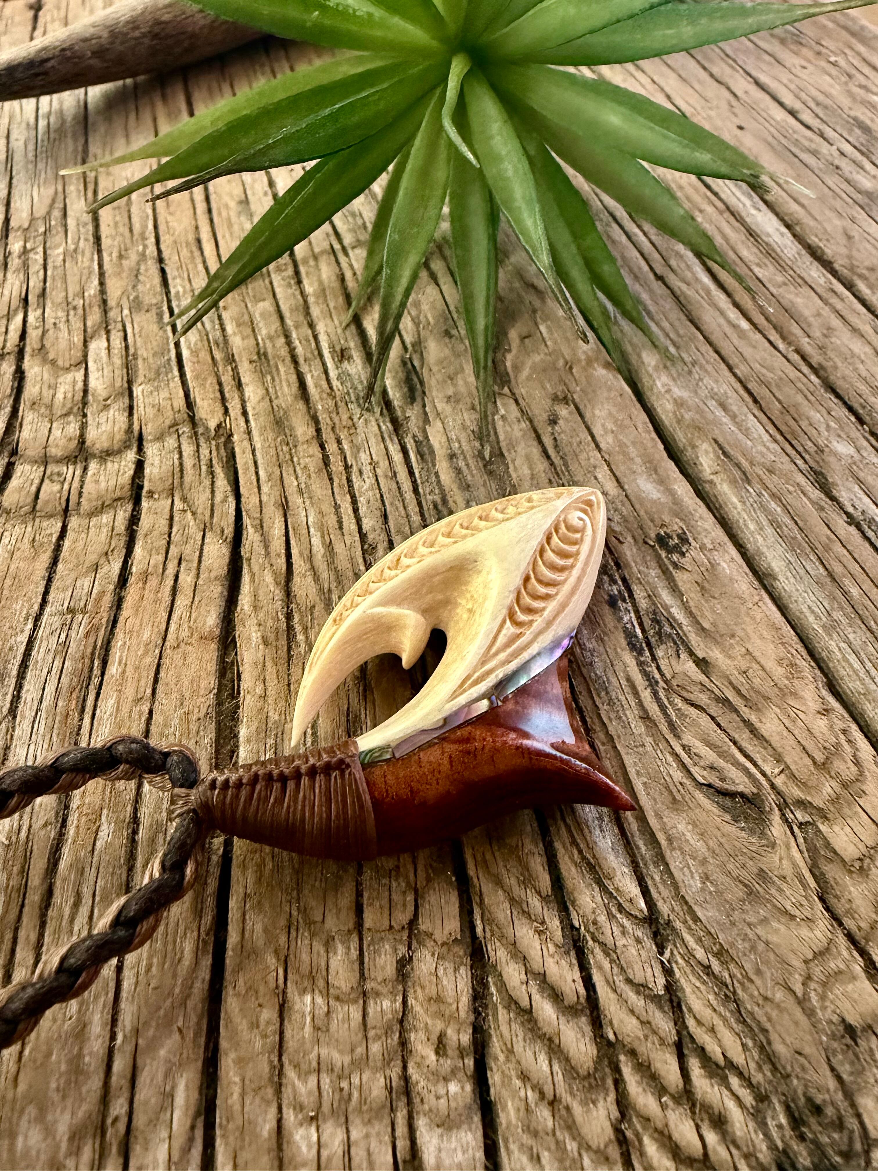 マッコウクジラ顎骨+プレミアムハワイアンコア+アバロンシェルhook