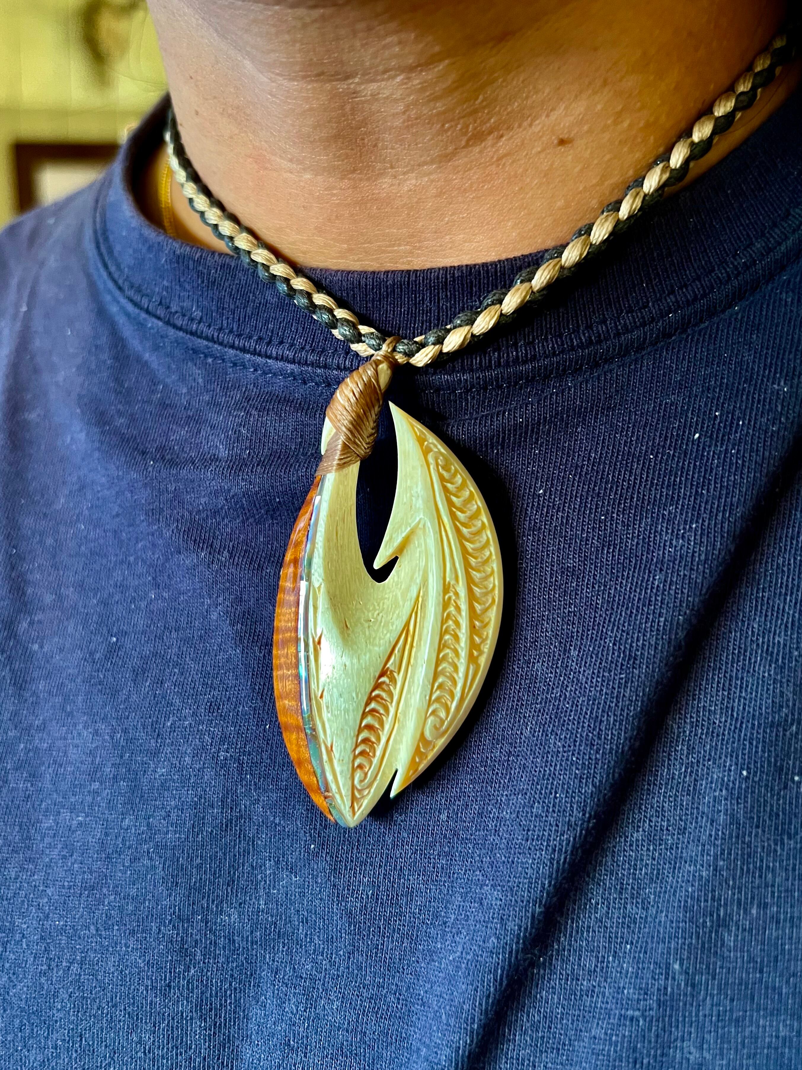 マッコウクジラ顎骨+プレミアムハワイアンコア+アバロンシェルhook
